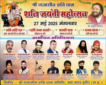 Indore. On the occasion of Shanishari Jayanti, it was celebrated with great pomp at Gajasin Shanidham in Usha Nagar under the guidance of Dr. Dadu Maharaj.